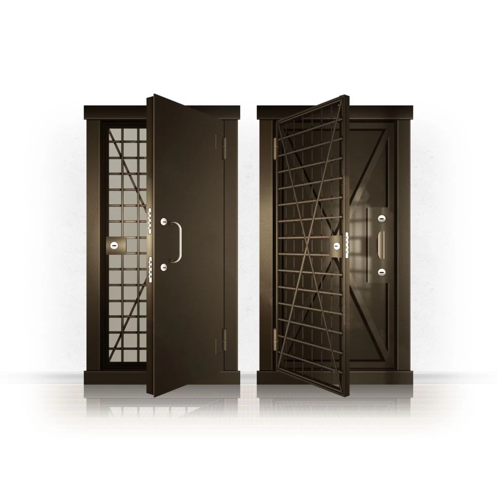 Металлические двери КХО и КХН представляют собой входные блоки, обладающие высоким уровнем взломостойкости и состоят из трех основных элементов: усиленного каркаса, сплошного металлического полотна и решетчатой двери. Дверной блок изготавливается из стального уголка 100*100 мм. Места крепления блока к стене цементируются и закрываются стальными наличниками шириной 40 мм. Крепеж заходит вглубь стены на 80 мм. В конструкции внешней створки монтируются ребра жесткости, для обшивки используется сталь толщиной не менее 3 мм. Внутренняя решетка изготавливается из прутка диаметром 16 мм. Размер ячеек решетки должен составлять не более 15 на 15 см. В точках пересечения прутья надежно приваривают друг к другу. В КХО и КХН необходимо поддерживать определенную температуру и влажность. Для этого внутреннее пространство глухой двери заполняется теплоизоляционным материалом, а по периметру двери приклеивается уплотнитель. Такие двери оборудуются замками с повышенным уровнем взломостойкости. Специализированные двери КХО и КХН в Иваново могут быть оснащены сигнализацией, в конструкции могут быть проушины для навесного замка и элементами для опечатывания. Если идет речь о двери в комнату хранения оружия, в створке оборудуется окно для выдачи оружия и спец. средств, которое накрывается стальной дверцей.