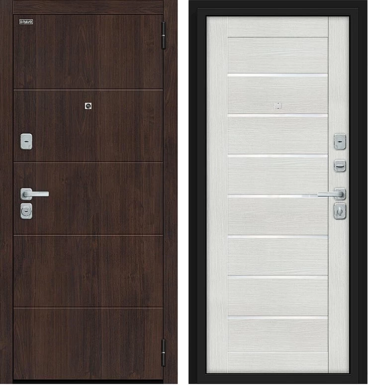 Надежная входная Дверь Браво Прайм/BChrome Almon/Bianco Melinga премиум класса по цене 39 447 руб. Большая толщина стали защитит от проникновения в ваш дом, квартиру или коттедж. Используется очень качественная фурнитура: замки, цилиндры, ручки, защелки. Покрытие и отделка двери изготовлено под внимательным контролем производителя. Дверь имеет долгий срок службы и гарантию.