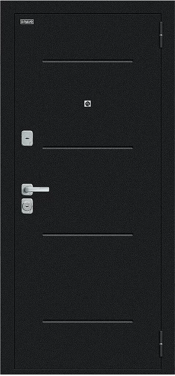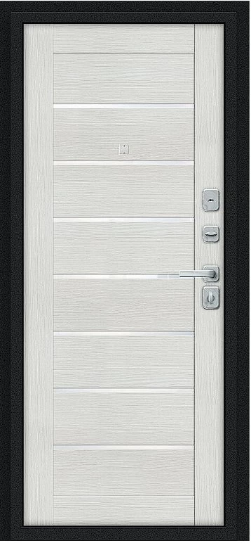 Надежная входная Дверь Браво Техно/BChrome Букле черное/Bianco Melinga премиум класса по цене 34 447 руб. Большая толщина стали защитит от проникновения в ваш дом, квартиру или коттедж. Используется очень качественная фурнитура: замки, цилиндры, ручки, защелки. Покрытие и отделка двери изготовлено под внимательным контролем производителя. Дверь имеет долгий срок службы и гарантию.
